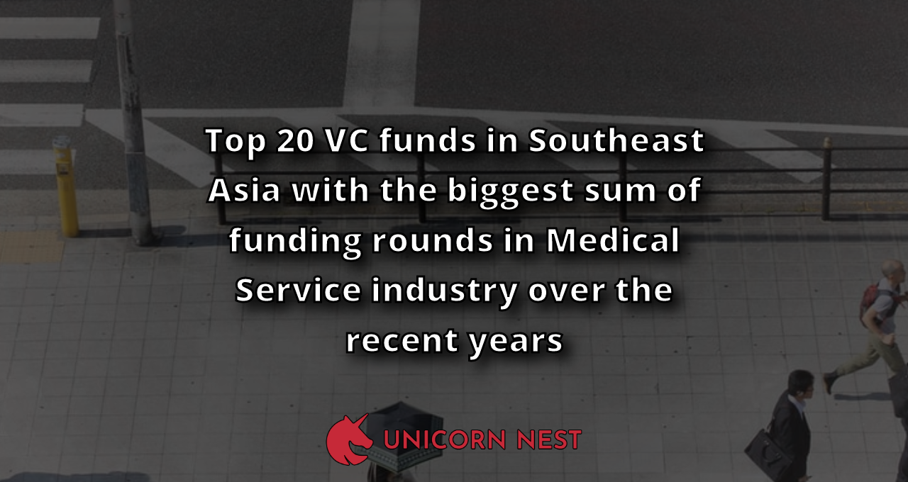 Top 20 VC funds according to the total money raised in the funding rounds. These are active VC funds that have invested over the last 4 years. These funds are actively investing in Medical Service industry.Top 20 VC funds in Southeast Asia with the biggest sum of funding rounds in Medical Service industry over the recent years